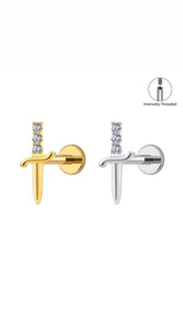 To measure for studs, insert a standard earring post into your piercing and mark it with your preferred length. Upon removal, use a ruler to measure the length in mm. When in doubt, size up to ensure a comfortable fit.